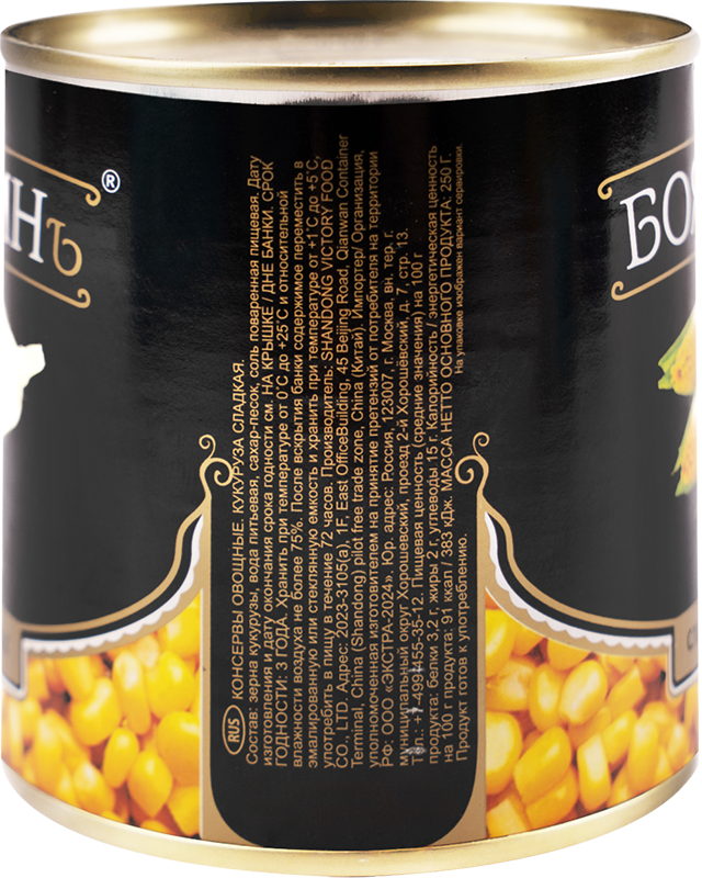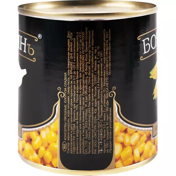 Зерна кукурузы консервированные “Бояринъ” (2,65 л / 1,84 кг) — это отборная сладкая кукуруза, приготовленная по классической рецептуре и законсервированная в удобной большой упаковке. Зерна сохраняют естественный вкус, сочность и аромат свежесобранной кукурузы, благодаря чему идеально подходят для приготовления разнообразных блюд.