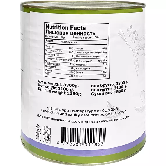 Маслины Alfakher без косточки в рассоле 3100 мл/1560 г