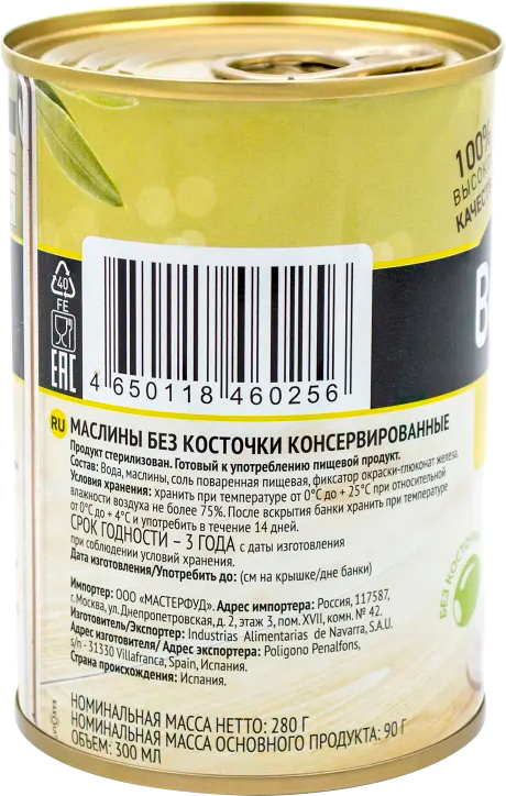 Маслины без косточки в рассоле 300 мл/90 г Botanica Испания