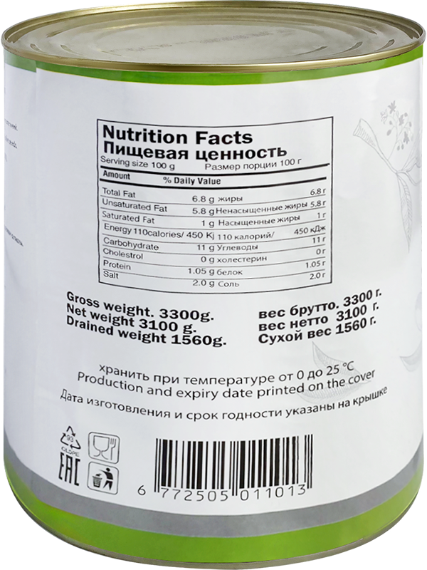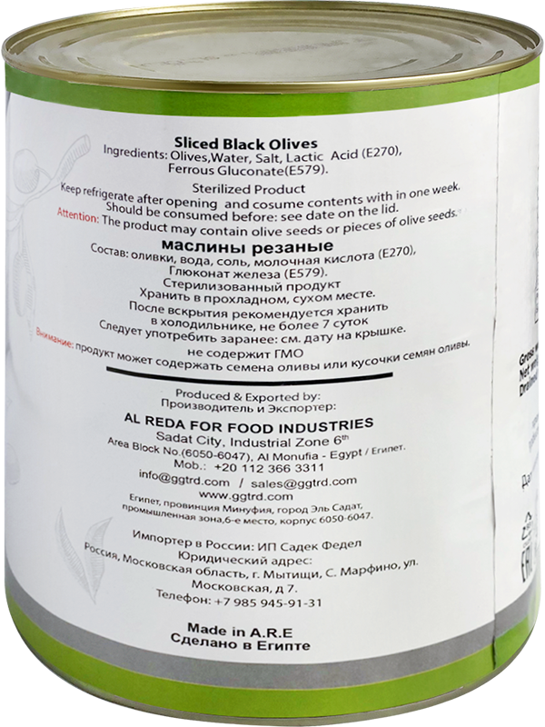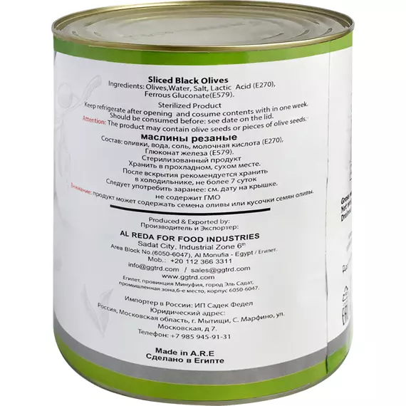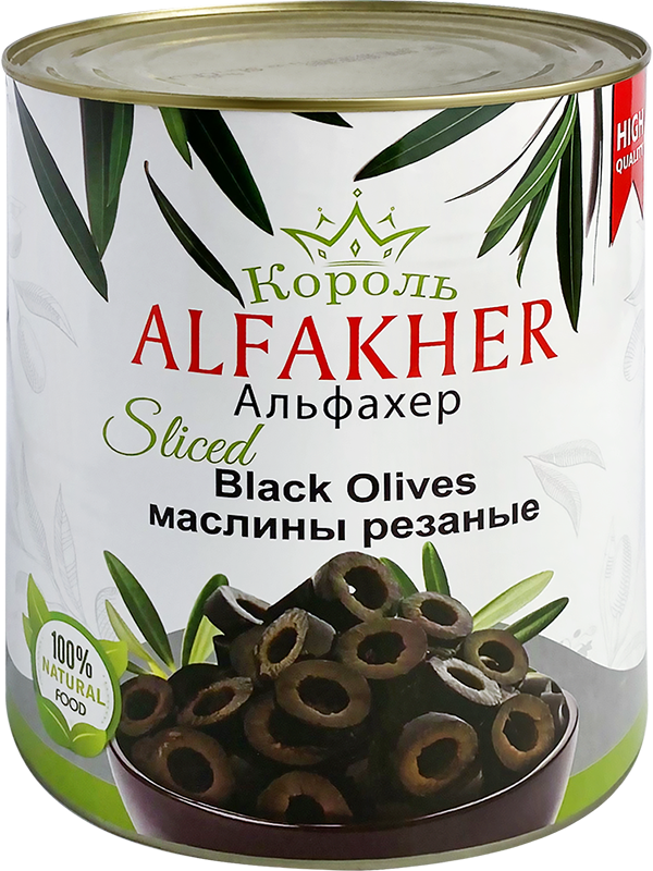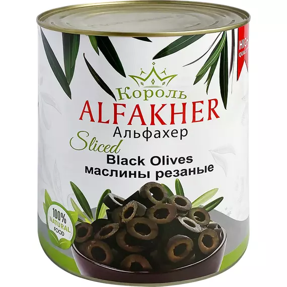 Маслины черные Alfakher резаные в рассоле 3100 мл/1560 г