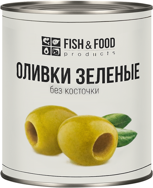 Оливки без кости Fish&Food, ж/б 3,1 л (масса 1,56 кг), Египет. Крупные, плотные, идеально для салатов и пиццы. Доставка по Крыму и Севастополю.
