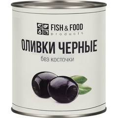 Отборные маслины без косточки Fish&Food (Египет) в металлической банке 3,1 л / 1,56 кг. Сочные, ароматные и универсальные в использовании.