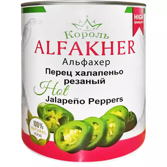 Перец Халапеньо маринованный, резаный Alfakher, 3100 мл/ 3000 г/1560 г, ж/б