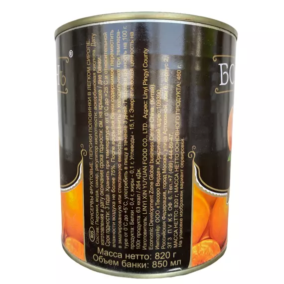 Персики консервированные половинки в сиропе Бояринъ, ж/б 850 мл/460 г