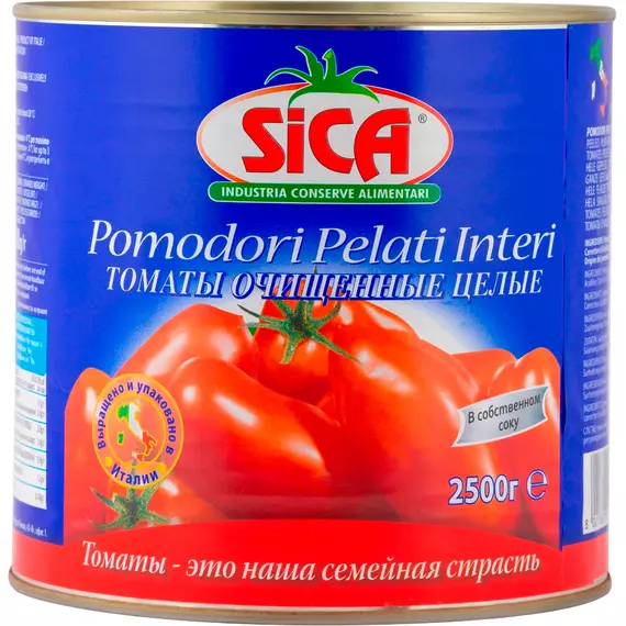 Томаты целые очищенные Sica в собственном соку 2,5 кг/1,5 кг