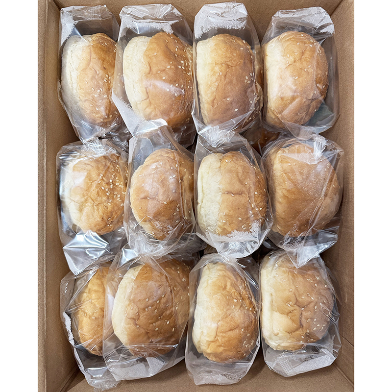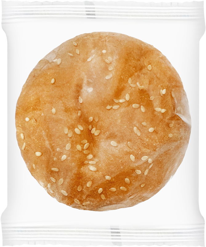 Каждая булочка имеет одинаковый вес, размер и форму, равномерную пористость теста, после разморозки кунжут не осыпается.