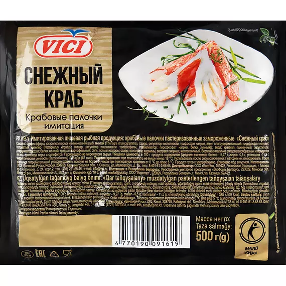 Крабовые палочки «Снежный краб» VICI — качественный замороженный продукт, изготовленный на основе сурими с нежной слоистой текстурой и приятным вкусом. Отличаются стабильным качеством, аккуратной формой и хорошей нарезаемостью.