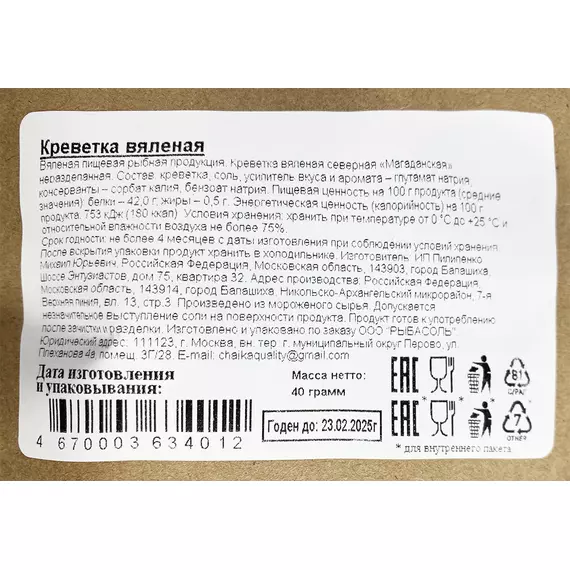 КРЕВЕТКА ВЯЛЕНАЯ 40Г ТМ "RЫБА & SОЛЬ" (КТ)