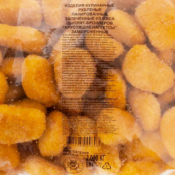 Наггетсы сделаны по классическому рецепту из филе куриной грудки в темпуре, благодаря чему сохраняется сочность мяса. Приготовить можно разными способами: обжарить на сковороде, во фритюре, в мультиварке, также запечь в духовке. Перед приготовлением продукт не требует разморозки.