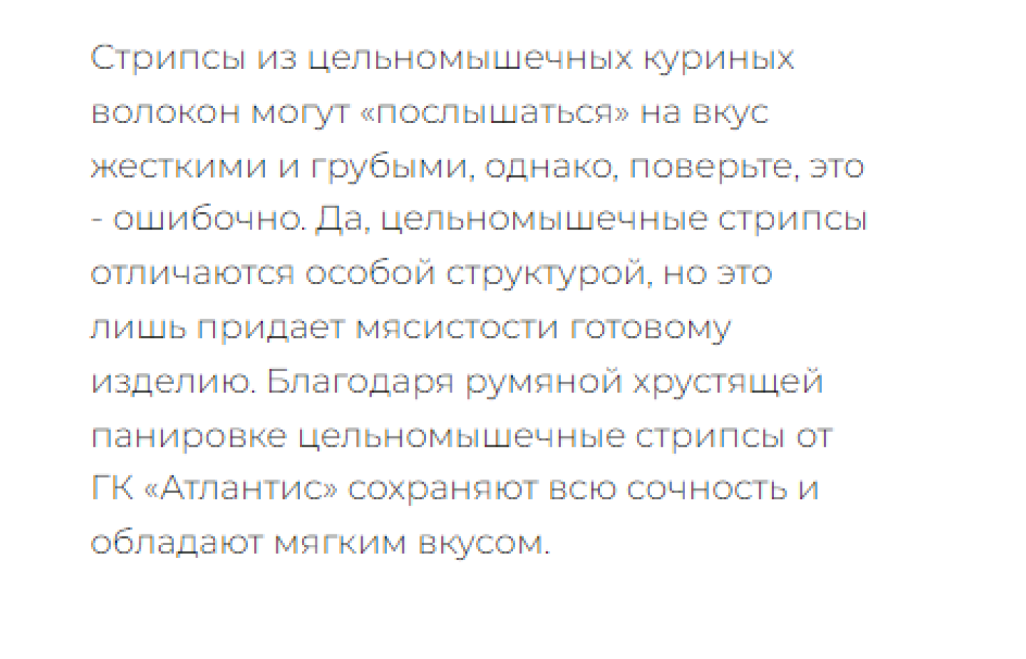 Стрипсы куриные Атлантис — это аппетитные полоски из цельного куриного филе, покрытые хрустящей панировкой. Приготовлены из отборного белого мяса без соевых добавок и искусственных консервантов.