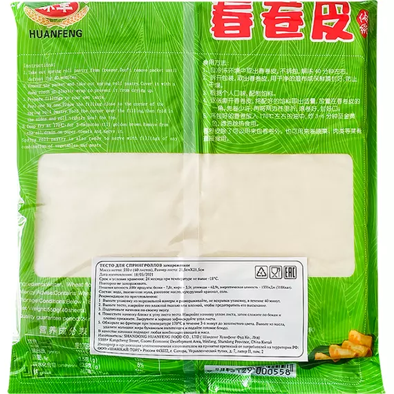 Тесто для Спринг-роллов предназначено для приготовления одного из самых популярных азиатских блюд. В качестве начинки можно использовать жареное мясо, овощи, морепродукты, грибы, а также острую пасту Кимчи и другие специи. Полностью натуральный состав и низкокаллорийность подойдет для диетических блюд.