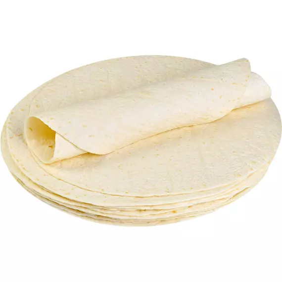 Классическая пшеничная лепешка для приготовления буритто, кесадильи, энчиладос или сытных рулетов и других закусок. Для придания румяной, хрустящей корочки тортилью можно поджарить на сковороде в течении 1-2 минут.