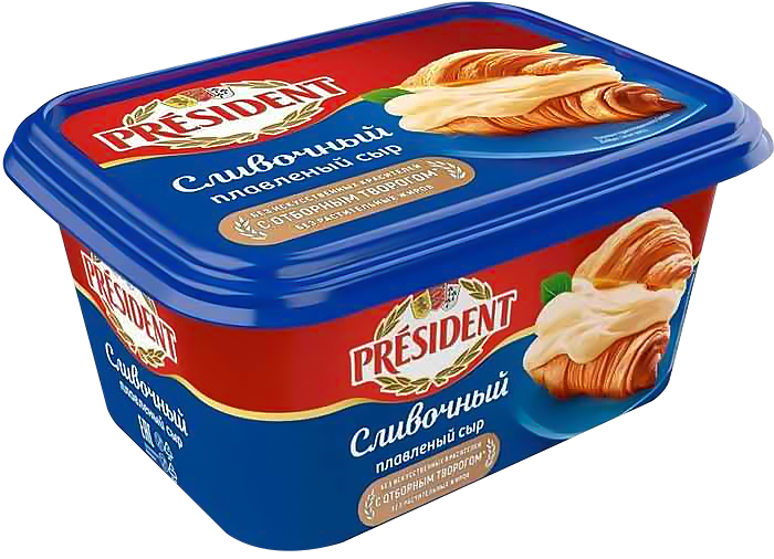 Сыр плавленый Сливочный Президент жир. 45% ванночка 400 г (1*8) обладает сбалансированным вкусом и нежной однородной текстурой. Сыр изготовлен из высококачественного сыра, не содержит растительных жиров и искусственных красителей.