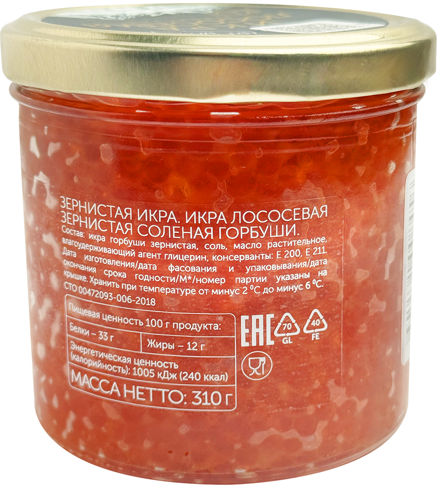 - Натуральная икра горбуши без консервантов и красителей;