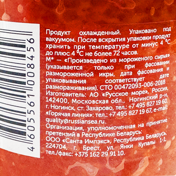 - Производство — Россия, бренд «Русское Море».