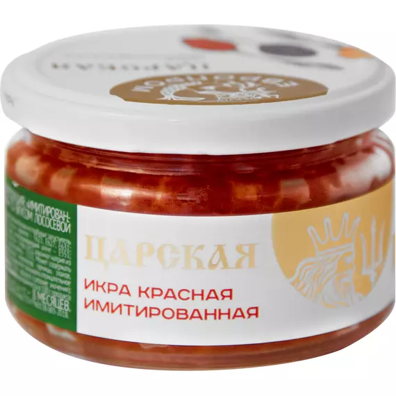 Имитированная икра Царская — продукт, идентичный настоящей икре. В линейке представлены вкусы лососевой,осетровой и щучьей икры. Каждая икринка, заключенная в нежную тающую оболочку, лопается на языке, как настоящая.