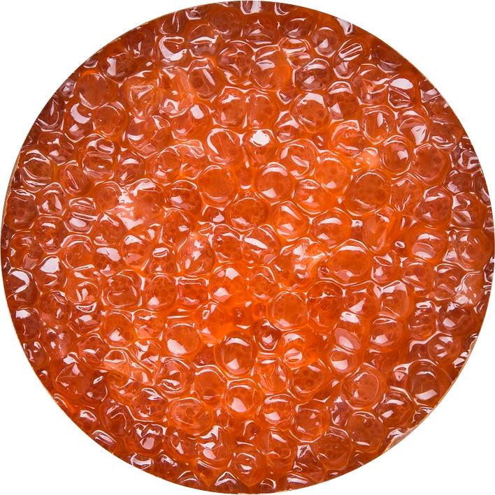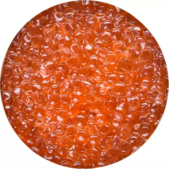 Красная икра лососевых рыб в солоноватом растворе с добавлением подсолнечного масла. Икра горбуши с характерным рыбным ароматом и вкусом.