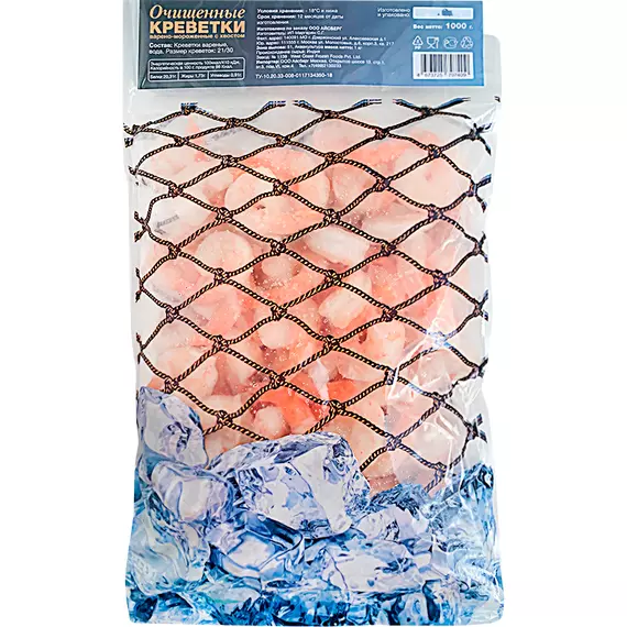 Креветки очищенные Тигровые с хвостом Айсберг 21-30, 1 кг