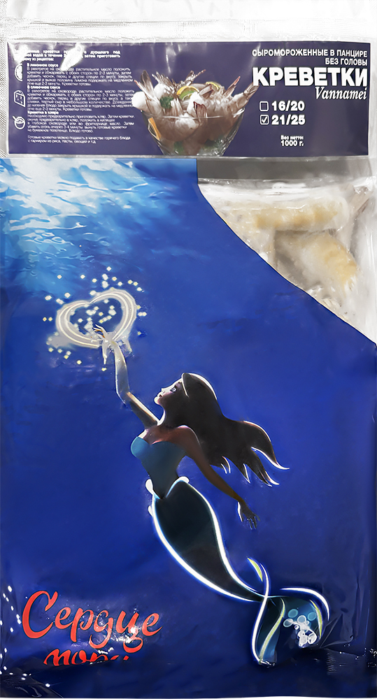 - креветки без головы, в панцире, что позволяет сохранить насыщенный вкус при термической обработке.