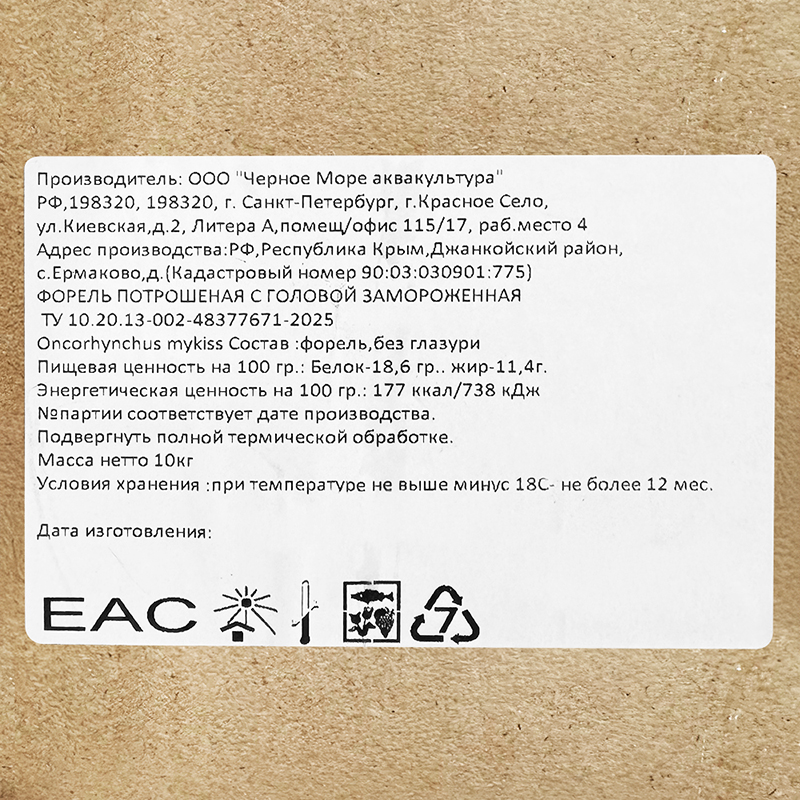 Форель свежемороженая с головой 1 +/- SUP (пак ~ 20 кг), вес