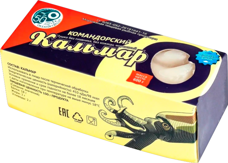 Командорский кальмар отличается мягким мясом, которое при правильной термической обработке остаётся сочным и нежным. Подходит как для быстрого обжаривания, так и для варки, тушения или приготовления на гриле.