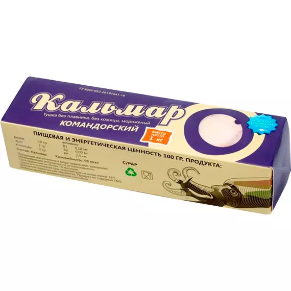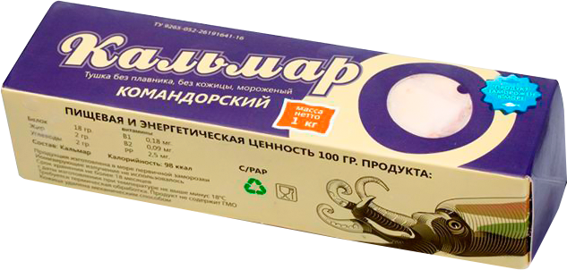 Кальмар тушка очищенный Командорский, свежемороженый, 1 кг