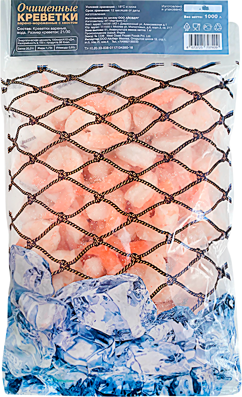Креветки очищенные Тигровые с хвостом Айсберг 21-30, 1 кг