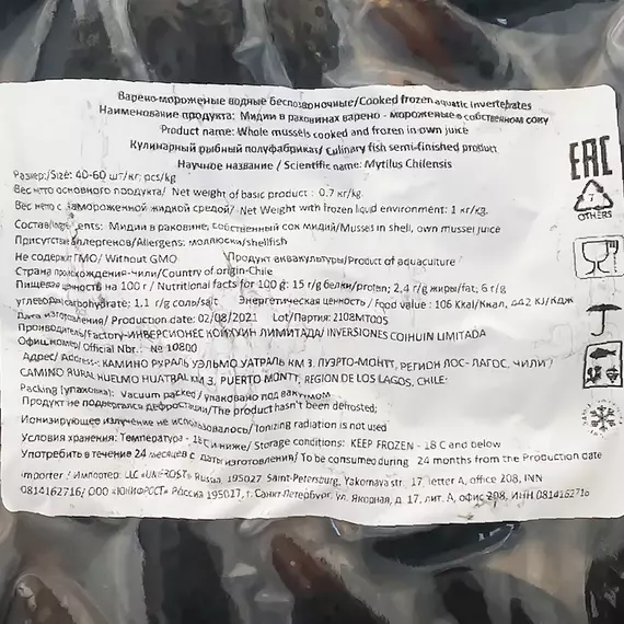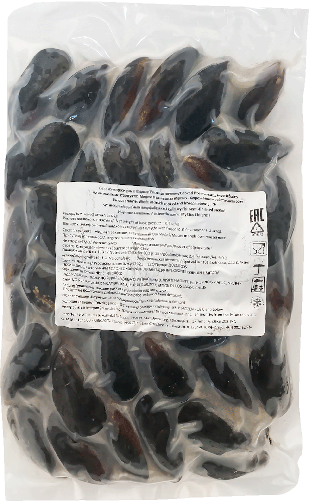 Мидии целые в раковинах 40/60 варено-мороженые 1 кг Чили