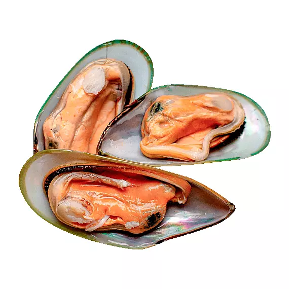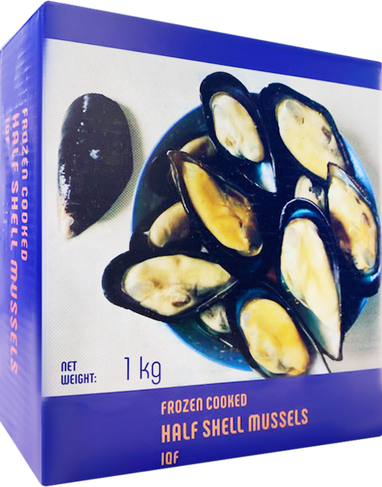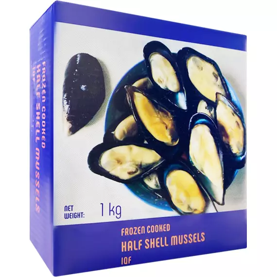 Мидии Киви в 1/2 раковины 30/40 варено-мороженые 1 кг Китай