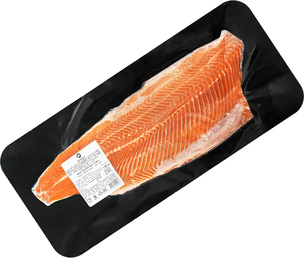 Филе форели свежемороженое Трим В, малосоленое, 1,25 + кг Китай, вакуумная упаковка (пак ~ 26 кг) вес*