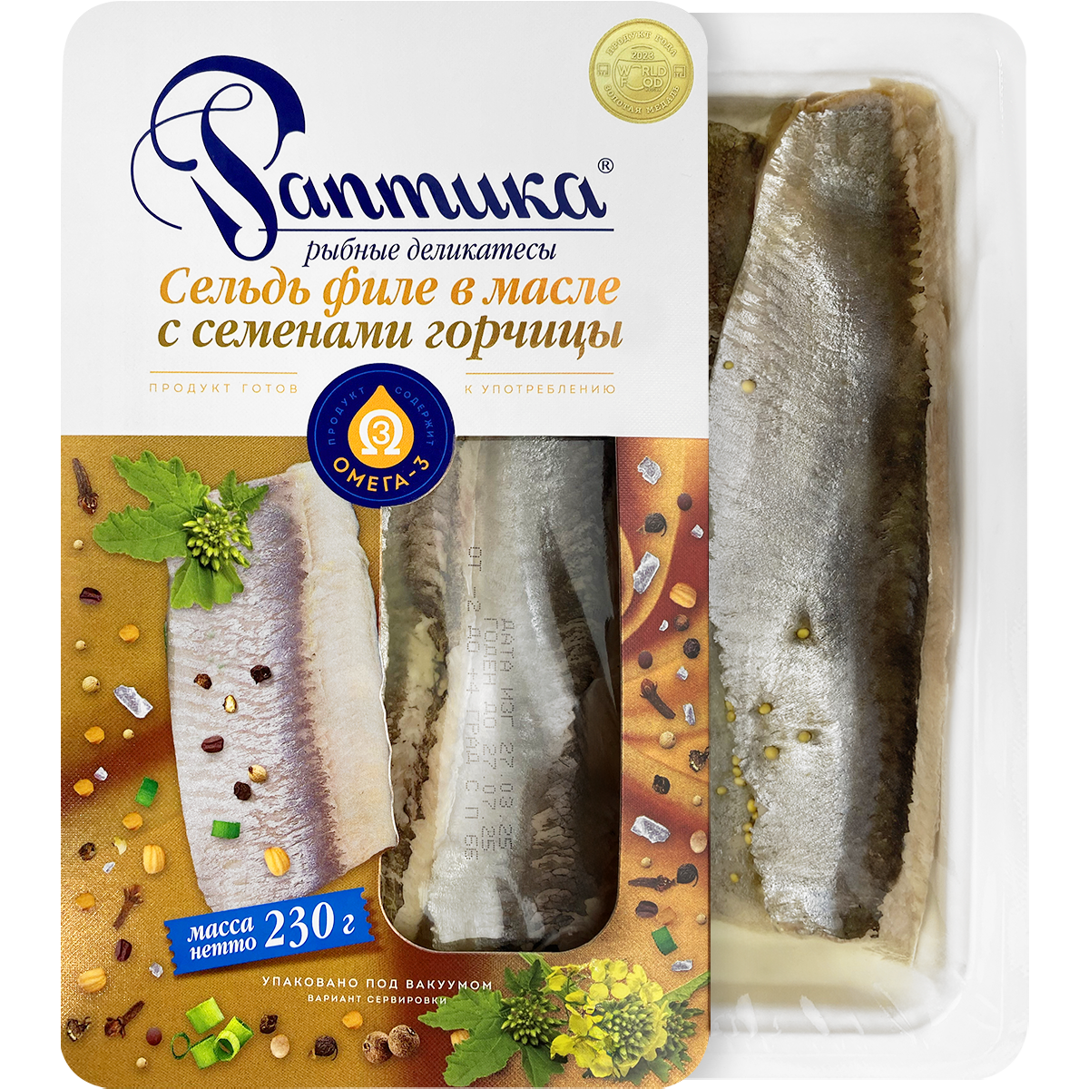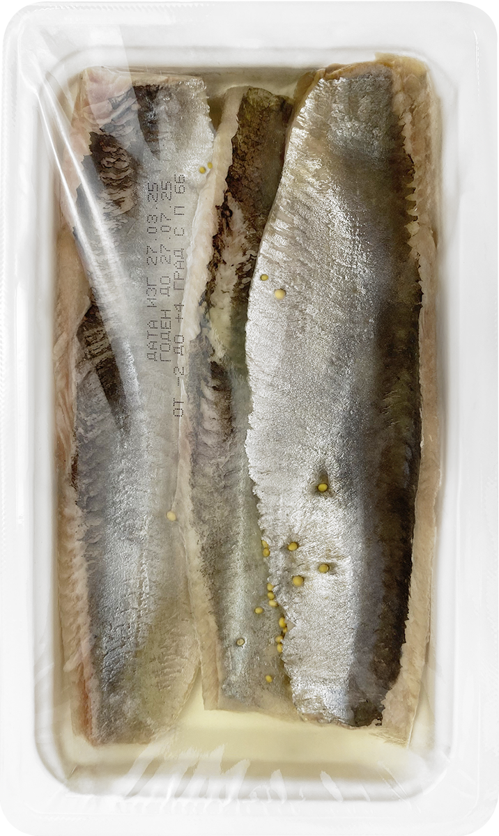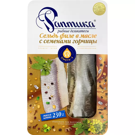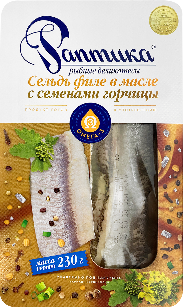 Пикантный деликатес, приготовленный по особой технологии нашей компании - филе сельди в натуральном масле с добавлением семян горчицы.
