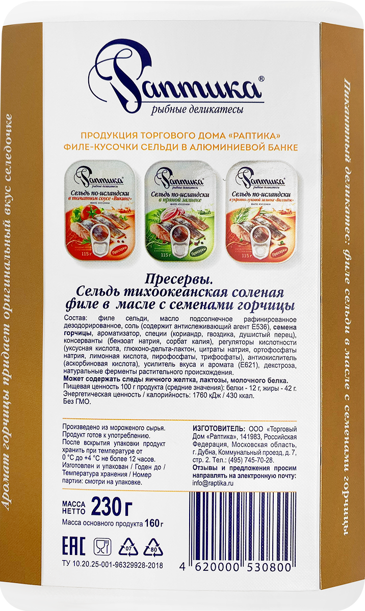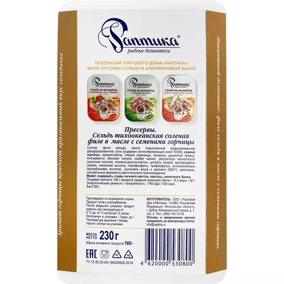 Сельдь Раптика филе в масле с семенами горчицы 230г