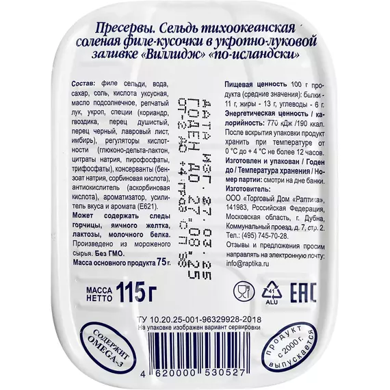 Сельдь Раптика По-исландски Виллидж в луково-укропной заливке 115 г
