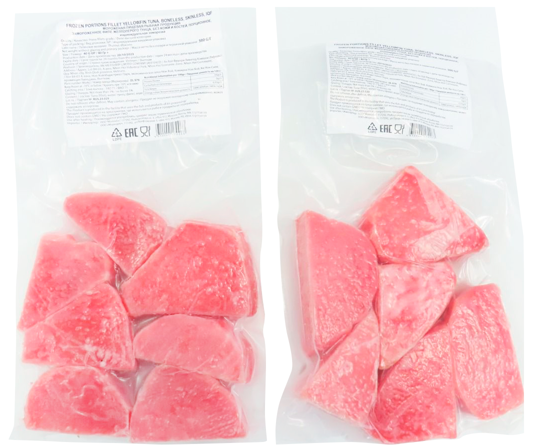 Филе тунца свежемороженое порционное Yantai 50+ 500 г, Китай
