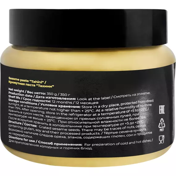 Кунжутная паста Тахини является неотъемлемым ингредиентом в блюдах израильской кухни. Кунжутная паста обладает ярко-выраженным ореховым вкусом, нежной текстурой. Станет незаменимой для веганов или людей в пост.
