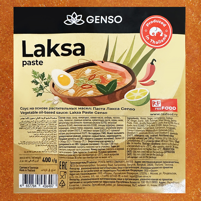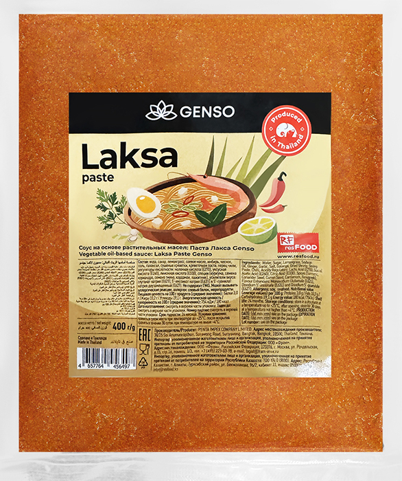 Паста Лакса Genso — это готовая основа для приготовления популярного азиатского супа Лакса. Ароматная смесь специй и приправ сочетает в себе острые, пряные и кокосовые ноты, характерные для кухни Юго-Восточной Азии.