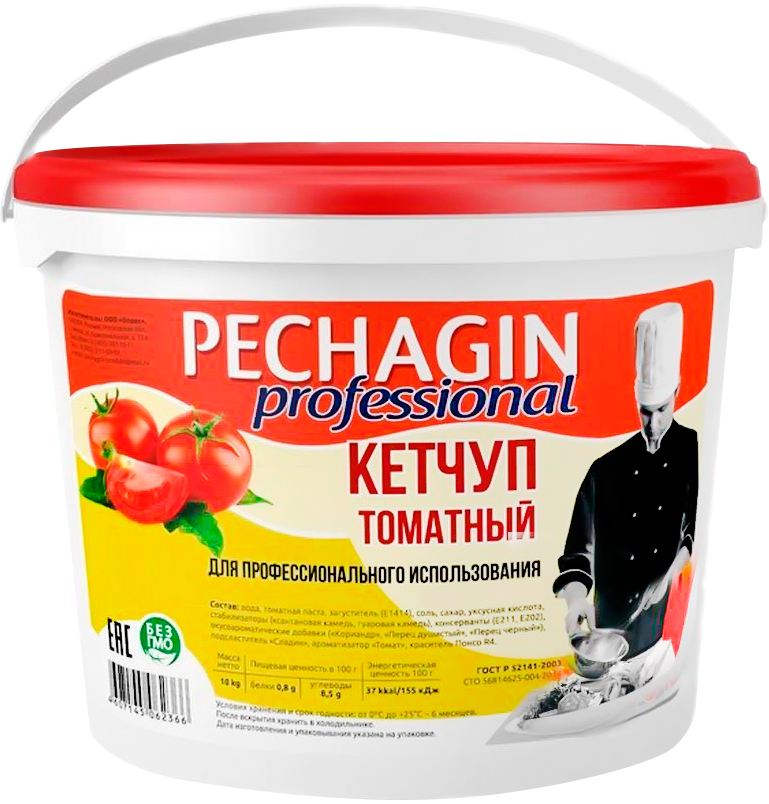 Кетчуп Печагин томатный - готовый к употреблению продукт, поставляется в пластиковой таре. Широко применим для стритфуда: хот-догов, шаурмы; мясных блюд и овощей. Продукт приготовлен на основе томатной пасты с добавлением специй.