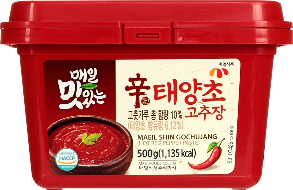 Паста перцовая острая Кочудян (Gochujang), 500 г — традиционный корейский соус, придающий блюдам неповторимую остроту, насыщенный вкус и аппетитный аромат. Основу пасты составляют красный перец чили, ферментированные соевые бобы, рис и соль. Благодаря натуральным ингредиентам и сбалансированной рецептуре, Кочудян имеет густую консистенцию, приятную сладко-острую нотку и характерный умами-вкус.