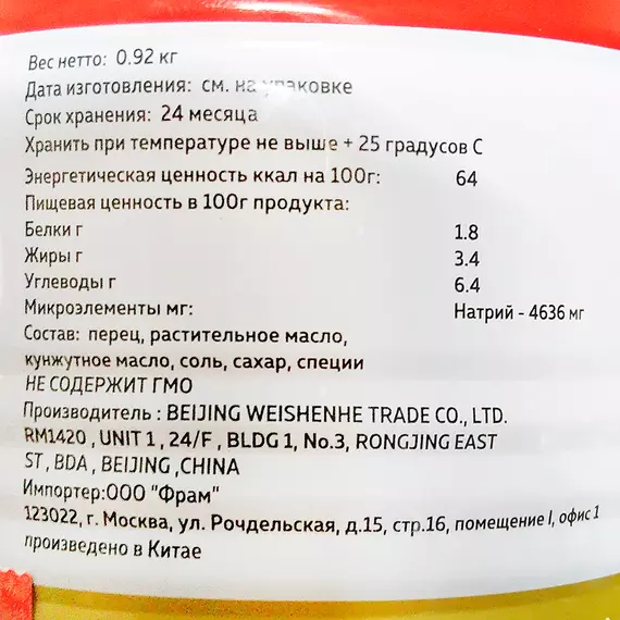 перец, растительное масло, кунжутное масло, соль, сахар, специи