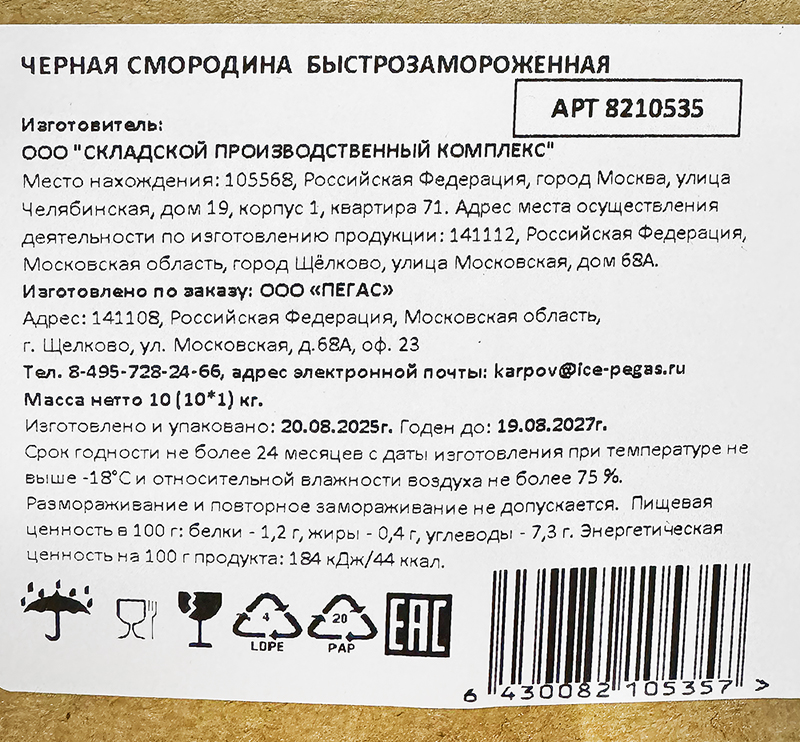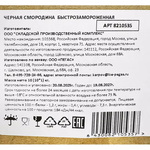 Смородина черная замороженная — это натуральная ягода, сохраненная методом шоковой заморозки для максимального сохранения вкуса и полезных свойств. Черная смородина богата витамином C, антиоксидантами и микроэлементами, укрепляющими иммунитет и поддерживающими здоровье организма.