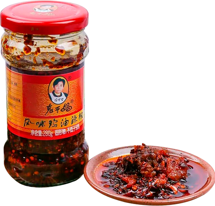 Соус Lao Gan Ma - один из самых популярных соусов применяемых в Сычуаньской кухне. Соус на основе бобовой пасты с острым перцем имеет густую консистенцию, обладает маслянисто-острым вкусом с оттенком копченостей.