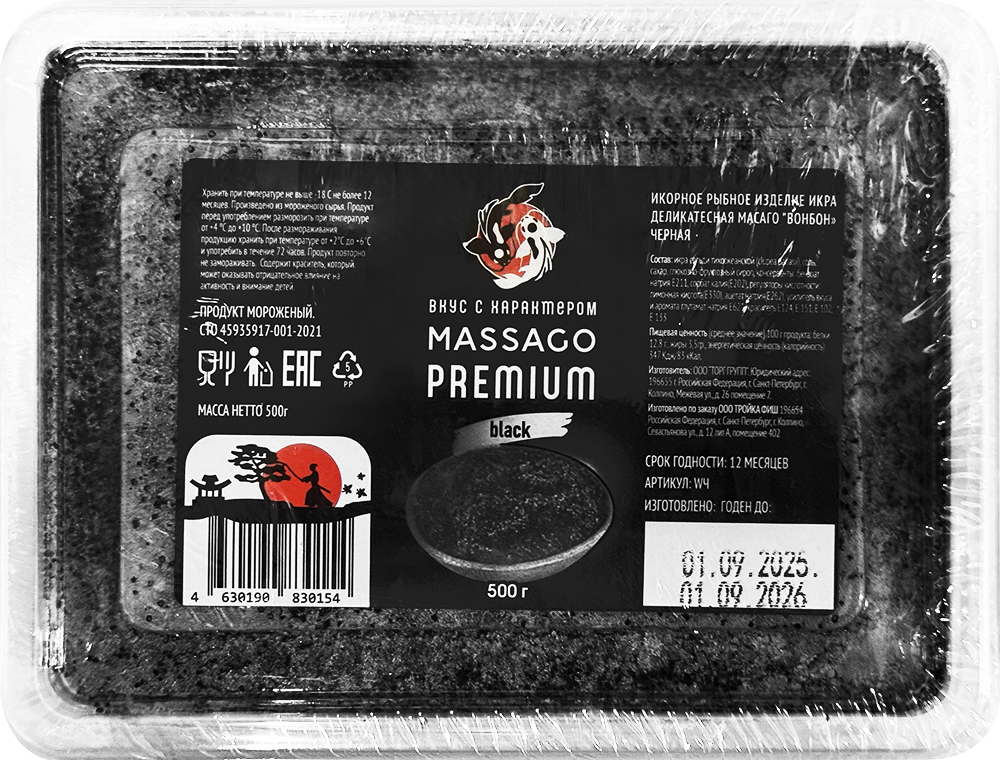 Икра Масаго чёрная Вонбон Premium замороженная 500 г