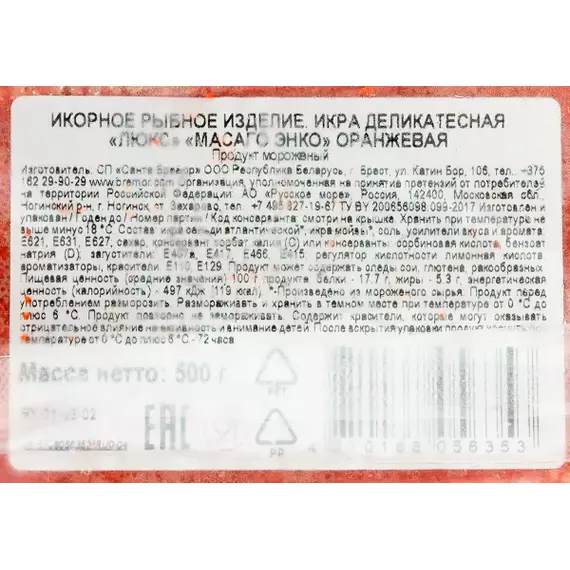 Икра Масаго оранжевая Энко Люкс замороженная 500 г Санта Бремор