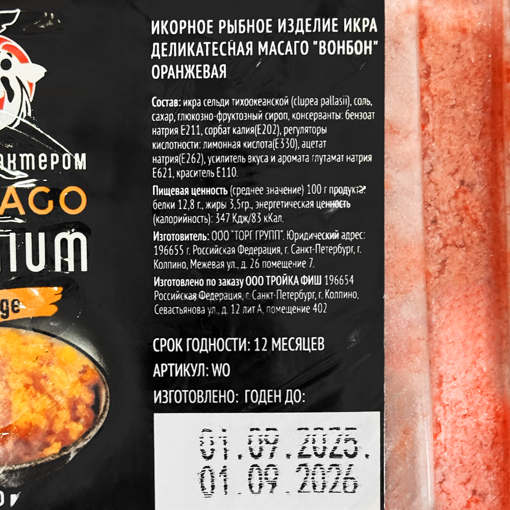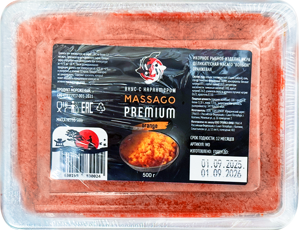 Икра Масаго оранжевая Вонбон Premium замороженная 500 г