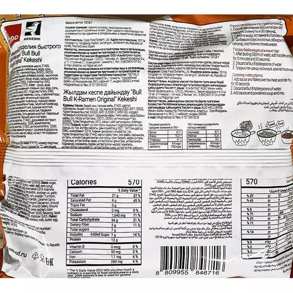 Лапша быстрого приготовления "Bull Bull K-Ramen Original" KEKESHI Корея 689 г (137,8г*5)*8