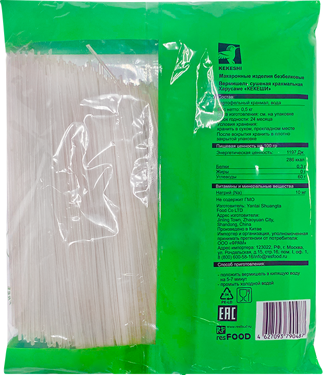 Стеклянна лапша Харусаме Kekeshi, 0,5 кг