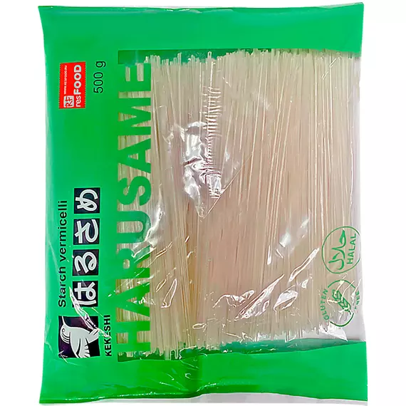 Лапша Харусаме частый ингредиент в блюдах азиатской кухни. Основным ингредиентом лапши является картофельный крахмал, что при варке делает ее прозрачной.