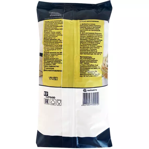 мука пшеничная хлебопекарная высшего сорта, мука рисовая, мука кукурузная, крахмал кукурузный, комплексная пищевая добавка пекарная, разрыхлители. Содержит глютен, может содержать следы сои, орех, молока, яиц и кунжута