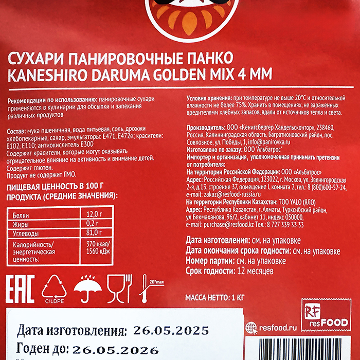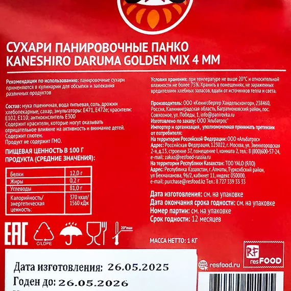 Панировочные сухари Панко Канеширо Дарума — традиционная японская панировка, придающая блюдам воздушную хрустящую корочку. Размер крошки 4 мм (микс) обеспечивает равномерное покрытие и минимальное впитывание масла, что делает блюда менее жирными и более аппетитными.