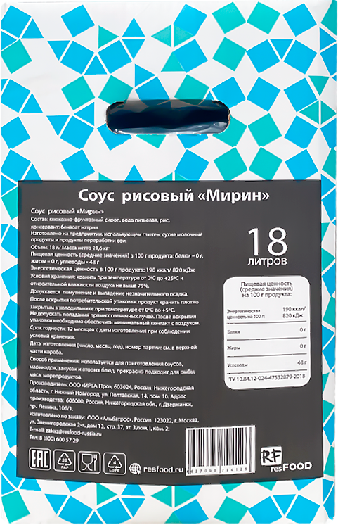 Рисовый соус Мирин Padam, 18 л